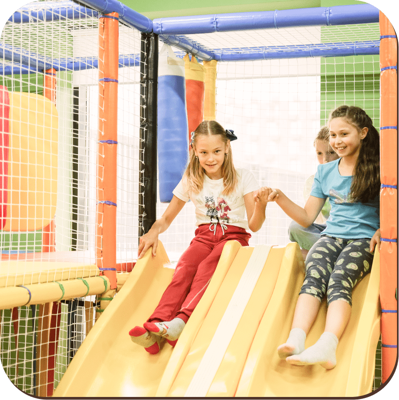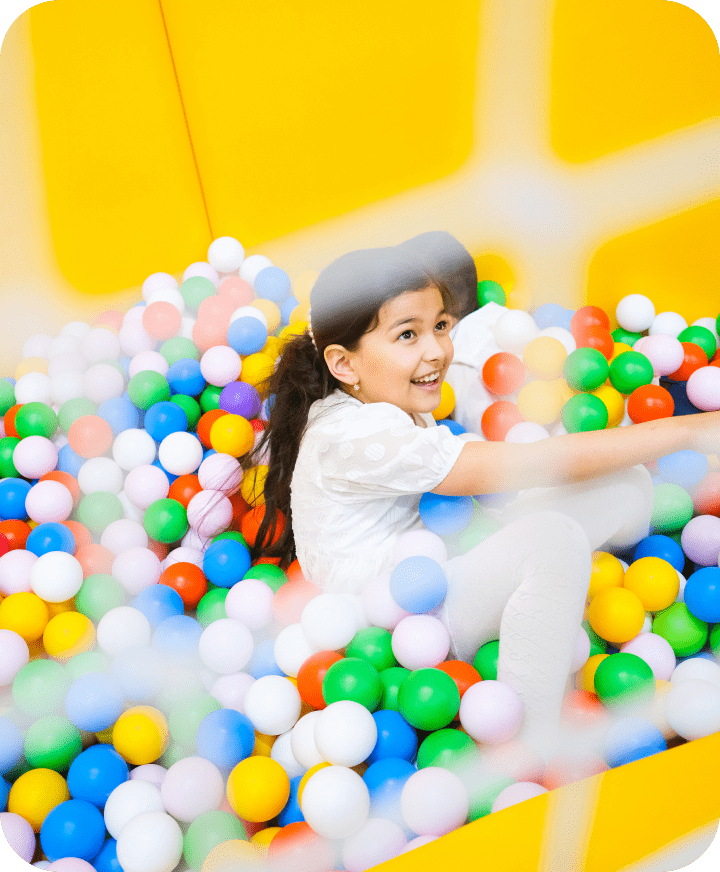 Большая игровая с ярким интерьером, в которой вас ждут аттракционы и просторы для детских игр, чтобы провести нескучный выходной или устроить грандиозный праздник
